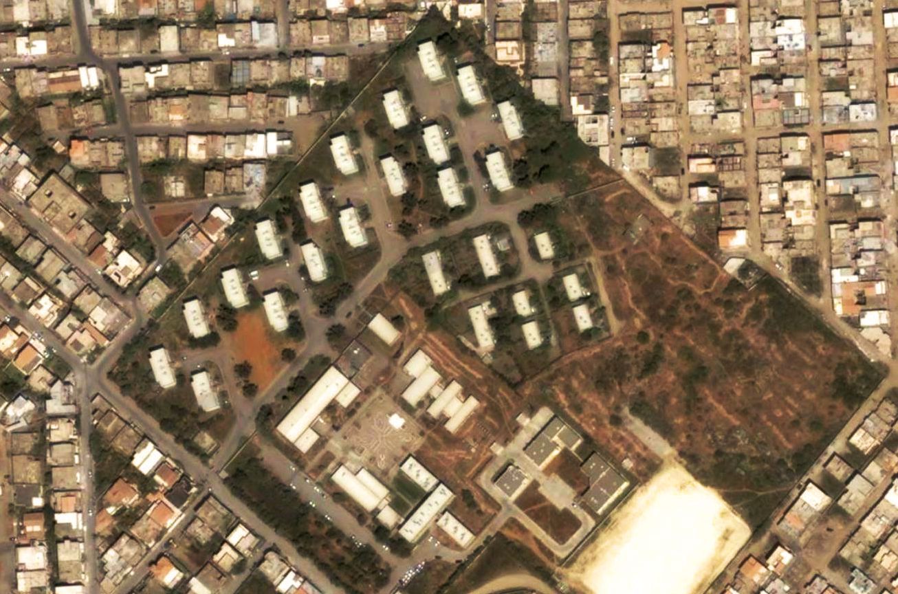 Citè Douaniere, Algeres (en haute, a droite, et a gauche), avec batiment residenciel a un niveau et a RDC + 3 niveaux; bureaux pour Departement Algérien Des Douanes, restaurant, celibatorium, asile et bibliothéque;